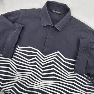 Neil Barrett Mens Button Shirt 39 Small Zig Zag Print Italy Luxury Art Designer