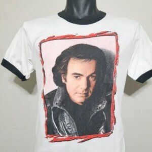 Men's 80s Vintage 1986 Neil Diamond Live At Madison Square Garden Concert Tour Ringer Tee Top