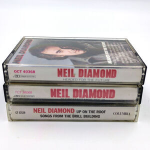 Lot of 3 Neil Diamond Cassette Tapes. The lot includes the following albums: Headed for the Future, Up on the Roof, and 12 Greatest Hits Volume 2. All have not been tested. Please see pictures for details on condition.