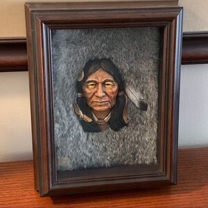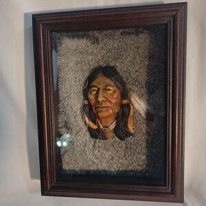 Neil Rose Native American Ceramic Sculpture Shadowbox “Grey Owl”