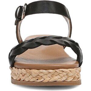 Leather, suede, raffia fabric or raffia leather upper responsibly sourced from Leather Working Group certified tanneries with an open toe
