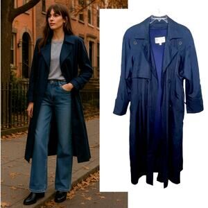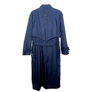 Neiman Marcus 10 LUXURY Full Length Trench Coat Belted Long Rain Jacket Blue EUC
