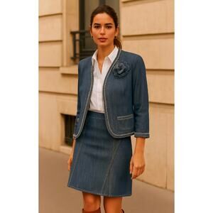 Neiman Marcus 10 Lida Baday Linen Skirt Set $1200 Denim Blazer Jean Skirt Blue