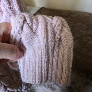Neiman Marcus 100% Cashmere Sweater Large Pink Cable Knit Mock Neck Pullover
