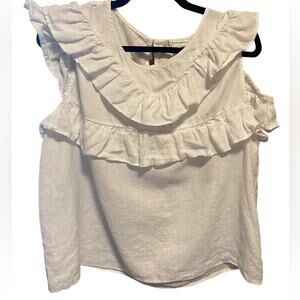 Neiman Marcus 100% Linen Blouse Women’s Size XL White Ruffled Cold Shoulder