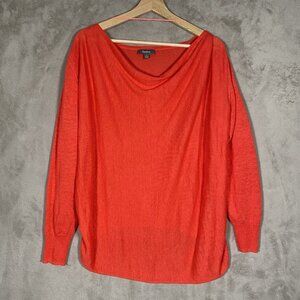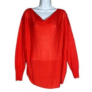 Neiman Marcus 100% Linen Relaxed Fit Cowl Neck Hi-Low Lightweight Pullover Sweater in Coral, Size Small