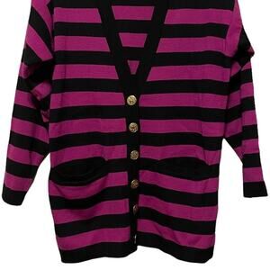 Neiman Marcus 100% Wool Button Up Striped Cardigan, good condition, very small hole on front left side (see pics), size medium
