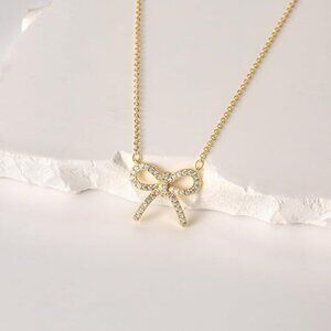 Our minimalist jewelry is crafted with care, plated with 14K gold, and adorned with a diamond bow pendant. This elegant piece adds a refined touch to any look, ensuring a sophisticated appearance