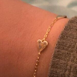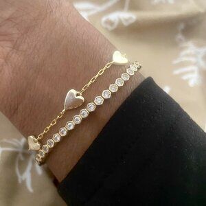 Neiman Marcus 14K Gold Plated Dainty Station Heart Charm Bracelet