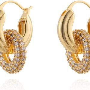 These 14K gold-plated huggie earrings feature a removable cubic zirconia-studded dangle hoop, offering a two-in-one styling experience. Wear them linked for added glamour or opt for the sleek standalone huggie for a minimalist look.