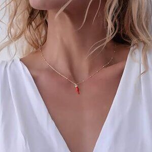 Neiman Marcus 14K Gold Plated on Silver Italian Horn Red Corno Necklace