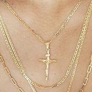 Flat Marina Link 060 Gauge Chain Necklace With Cross Charm Pendant
