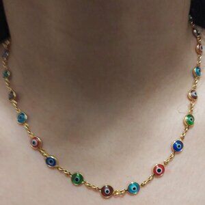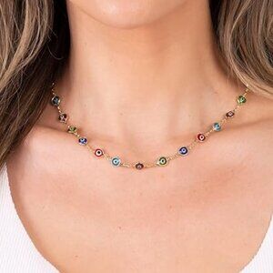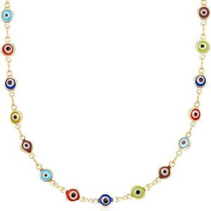 Neiman Marcus 18K Gold Plated Multi Color Evil Eye Necklace