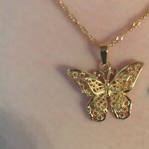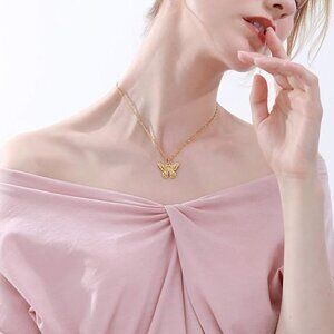 Neiman Marcus 18k Gold Plated Butterfly Necklace Delicate, airy, and symbolically rich, this open-work butterfly pendant necklace captures the essence of transformation and grace. Crafted with intricate filigree detailing and finished in radiant gold plating, it offers an effortlessly elegant accent to both casual and formal looks. Material: High-quality gold-plated, nickel-free and lead-free Pendant Size: 0.98" x 0.7" Chain Length: 14" with 2.36" extender for adjustable fit Hypoallergenic: Safe for sensitive skin, designed for all-day comfort The intricate filigree butterfly design brings an ethereal charm to this piece, making it perfect for those who love meaningful details with a soft, sophisticated finish. It adds a subtle statement of beauty and lightness to any outfit. Lightweight and refined, this necklace pairs seamlessly with everything from crisp blouses to flowing dresses, making it a versatile go-to for daily wear or special occasions. Symbolizing freedom, transformation, and hope, the butterfly pendant makes a heartfelt gift for birthdays, anniversaries, Valentine’s Day, or holidays—an elegant token of love and new beginnings. Gracefully feminine and timelessly styled, this butterfly filigree necklace offers a touch of nature-inspired beauty that feels as uplifting as it looks.