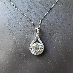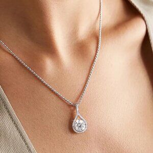 Neiman Marcus 18k White Gold on 925 Silver 1 CT Lab Diamond Pendant