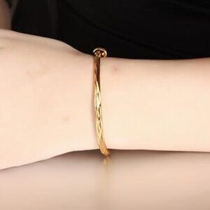 Crafted from high-polish 18K yellow gold, this adjustable bangle bracelet exudes elegance and durability. Designed for everyday wear, it retains its luster and brilliance without fading, making it a jewelry box essential.