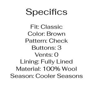 Neiman Marcus 44R Brown Check 3-Button Sport Coat Blazer Jacket V709
