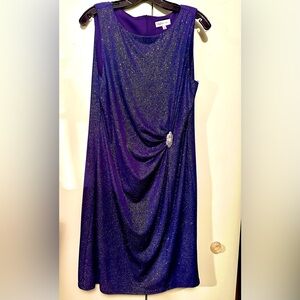 Neiman Marcus brand , tags removed but never worn- so great condition. Beautiful sparkly stretchy fabric that is very comfortable and flattering! The deco style pin is substantial and helps with the vintage esthetic.