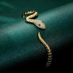 Look elegant and stylish with this gold plated snake bracelet. A beautiful snake design will make a dazzling fashion statement. Durable and long-lasting, it is the perfect accessory for any occasion.