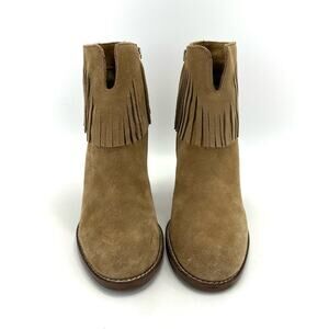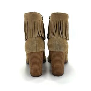 Neiman Marcus Avale Tan Ankle Boot Size 8 Suede Fringes Block High Heel Bootie