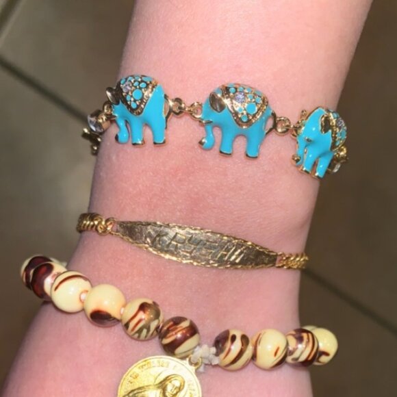 Neiman Marcus Barzel 18k Gold Plated Elephant Blue Eternal Bracelet