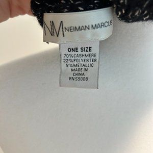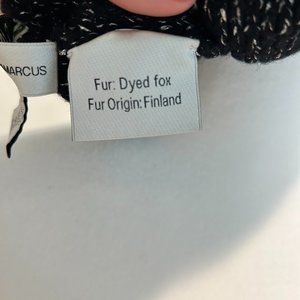 Black with slightly metallic threading throughout. Genuine fox fur pom.