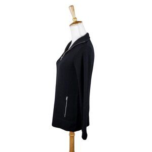 Nieman Marcus Luxurious black cashmere quarter zip sweater withzippered kangaroo pocket. Soft and elegant. Ideal for any occasion.