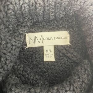 Neiman Marcus Black Chunky Knit Cowl Neck Pancho Cape Oversized Sweater M/L