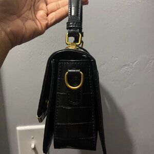 Neiman Marcus Black Crocodile Leather Crossbody Bag with Gold Hardware