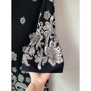 Neiman Marcus Black Floral Print Bell Sleeve Dress Womens Size S
