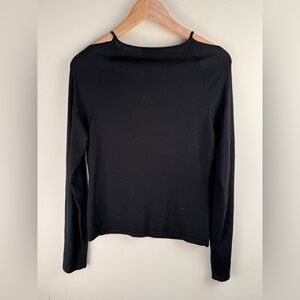 Neiman Marcus Black Long Sleeve Silk Blend Cold Shoulder Shirt Size Large Chic