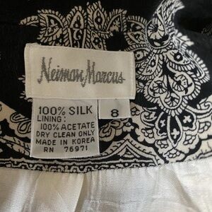 Neiman Marcus Black White Paisley 100% Silk Blazer Jacket Size 8 One Button
