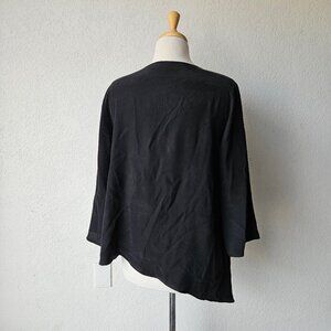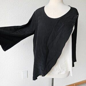 Neiman Marcus Black White Two Tone 100% Silk Asymmetrical Lagenlook Top Blouse M