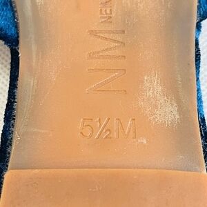 neiman marcus slides, blue velvet mules, bow tie flats, womens slip-on shoes, size 5.5 shoes, velvet slides, womens casual flats, indoor outdoor mules, pre-loved neiman marcus, luxury womens footwear
