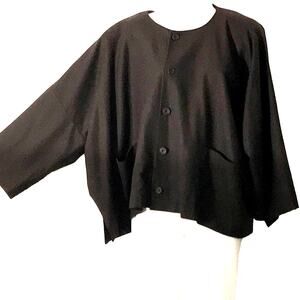 Brown Long Sleeve Wool Fully Silk Lined Jacket. Loose Fit. Front Pockets. Side Slits. Chest 36”. Length 23”. Item 1022