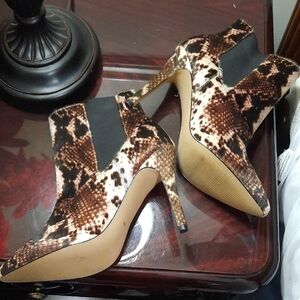 Neiman Marcus Brown Snake Print Heeled Boots