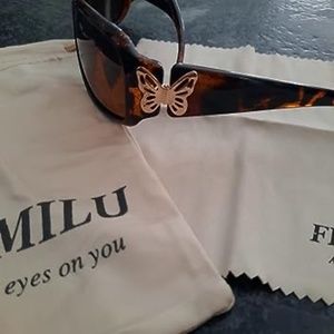 Neiman Marcus FASHION BUTTERFLY DECORATION Sunglasses with gorgeous and beautiful butterfly designs at the temples, from a distance, it looks like a butterfly resting on the side of your hair. Pop a pair of these on and take to the streets, leaving a row of admirers in your wake.