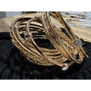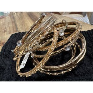 Neiman Marcus Cara NY New York Bead Gold Tone Metal Bangle Bracelets 15 piece Set