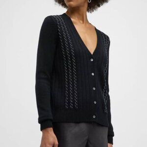 Neiman Marcus Cashmere Cable-Knit Cardigan with Pearlescent Beads - XL
