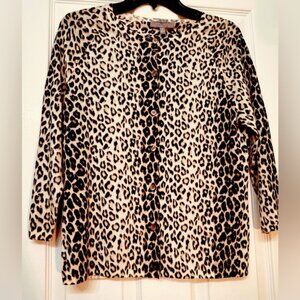 Neiman Marcus Cashmere Cardigan Brown Animal Print Sweater NWT