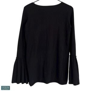 Neiman Marcus Cashmere Collection Bell Sleeve Black Silk Trim Sweater Large