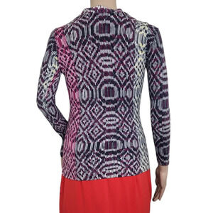 Neiman Marcus Cashmere Collection Magenta Yellow Aztec Button Down Cardigan