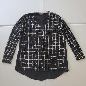 Neiman Marcus Cashmere Collection Shirt Womens Small Black Silk Wool Grid Print