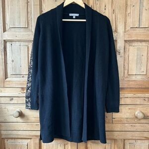 Neiman Marcus Cashmere Collection XS Black Sequin Open Front Cardigan Sweater