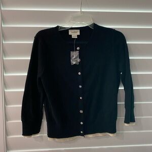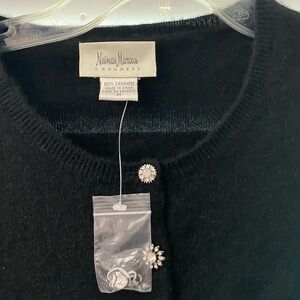 Neiman Marcus Cashmere NWOT Elegant black cardigan with cream accents. Features rhinestone button-down front. Ideal for layering. Size:M