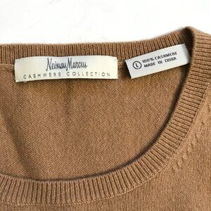 Neiman Marcus Cashmere Sweater Womens Large Brown Tan Crew Neck Long Sleeve Knit