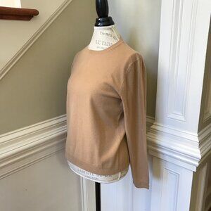 Women's Neiman Marcus Cashmere Sweater in a size Large. Neutral camel tan color with a crew neck and long sleeve construction made of 100% cashmere - it's versatile. Originally $298 - Fast Same Day Ship!