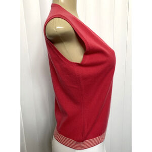 Neiman Marcus Cashmere Tank Top Blouse Knit Striped Hem Pink V neck Slee…