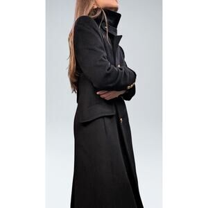 cashmere coat, wool coat, black maxi coat, a-line coat, military coat, vintage, golden buttons coat, funnel neck coat