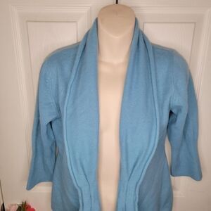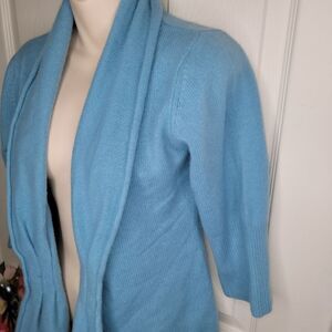 Neiman Marcus cashmere collection pleat open front cardigan. Three quarter sleeves.